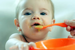 Bebé hermoso comiendo puré |